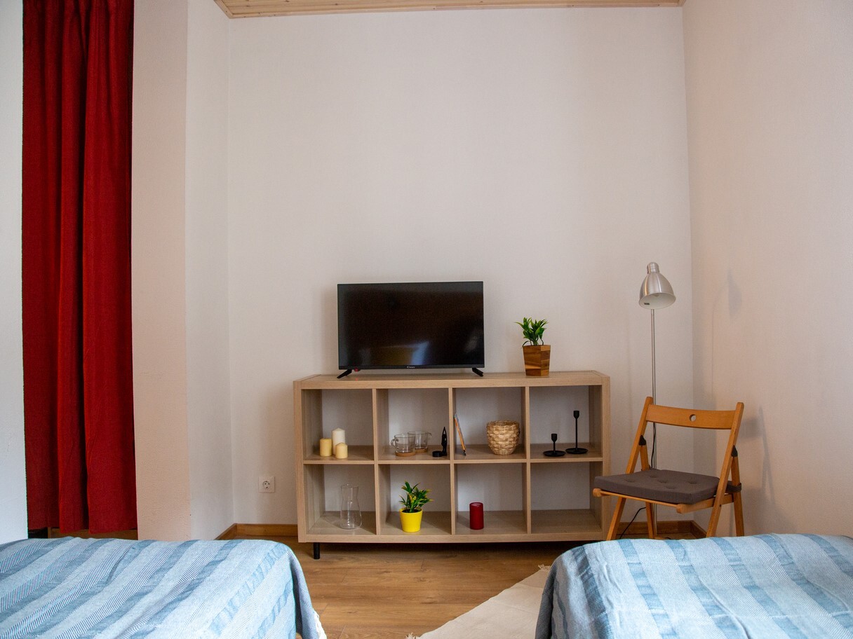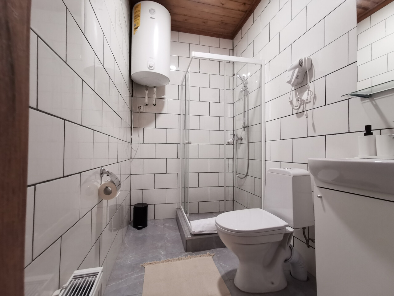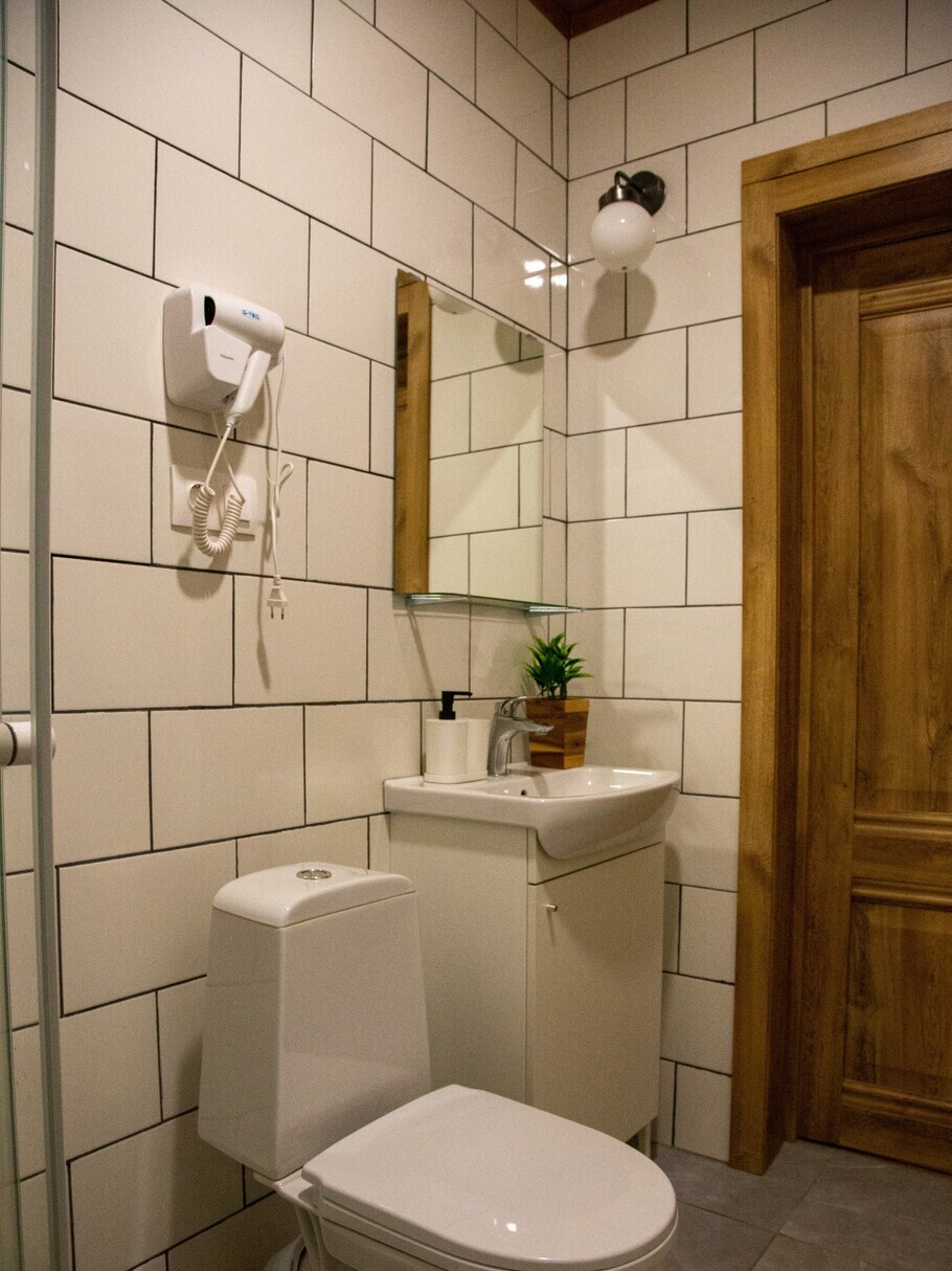 Удобства в номере - электрический чайник, чайный набор, ТВ, Wi-Fi, место для хранения одежды, фен, собственная ванна комната.