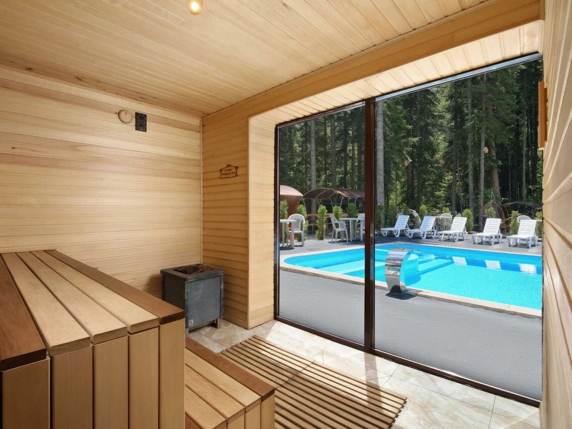 Открытый бассейн и сауны в отеле "МИРРОС Субай" на Домбае.